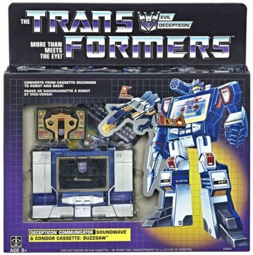 In fairness, even with the clever writing that made up their original bios, the characters likely wouldn’t have to come to life for me without the cartoon, and the amazing voice work. You could tell each character by their voice alone. Starscream spoke in a loud scratchy whine, totally appropriate for a backstabbing worm. Soundwave's voice was entirely done through a modulator, making him sound cold and inhuman. Peter Cullen and Frank Welker famously have contributed multiple voices, as well as dozens of others, including Scatman Crothers and Casey Kasem. It was their voices we heard when we played, and it’s their voices we hear today.